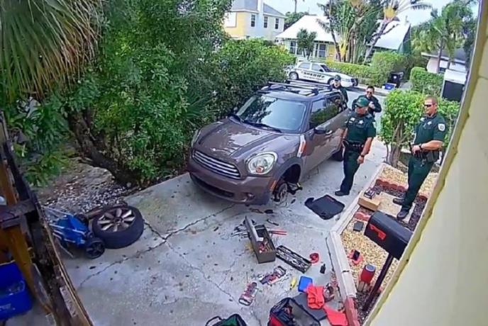 Posle poziva revnosne komšinice da neka žena u susedstvu vrišti i viče "Upomoć! Pustite me napolje!", patrola policije došla je na adresu odakle su se čuli krici. Međutim, tamo su zatekli čoveka koji mirno radio oko automobila. Ipak, rekli su mu da je stigla prijava da se iz njegovog dvorišta čuju pozivi u pomoć i da moraju da provere šta se događa.