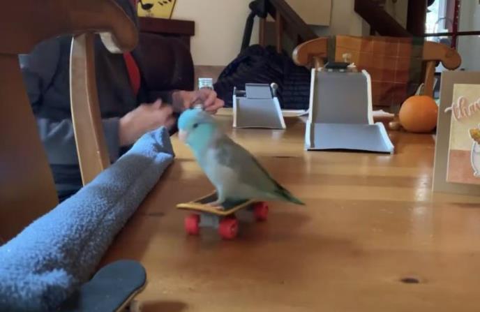 Ovo je papagaj po imenu Čarli, naizgled kao i svi drugi, ali ipak veoma poseban. Čarli vozi skejt i na skejtu se spušta niz rampe koje je napravila njegova vlasnica. Žena stavi mali skejt na početnu poziciju, papagaj stoji sa strane i kada je spreman, naskoči na skejt, a zatim se spusti niz tobogan, vozi po stolu i zaustavi udarajući u jastuk na ivici stola. -Bravo Čarli, ti si tako hrabar dečko!-govori mu vlasnica posle svakog spusta, a daje mu i hranu kao nagradu.