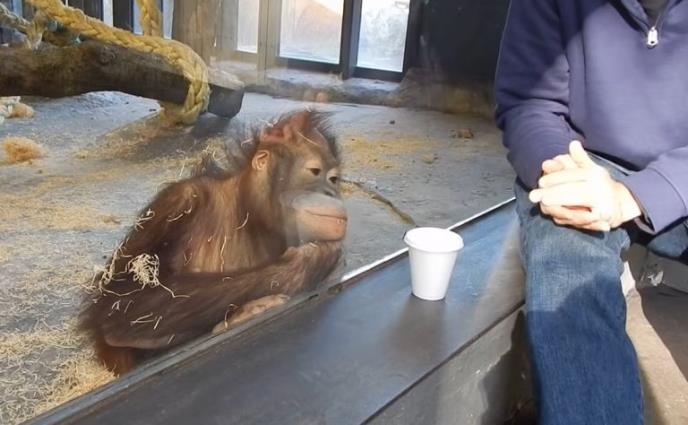 Čovek je u zoološkom vrtu zadirkivao ovu životinju, ona ga je pomno pratila šta je sve radio i št joj je pokazivao.