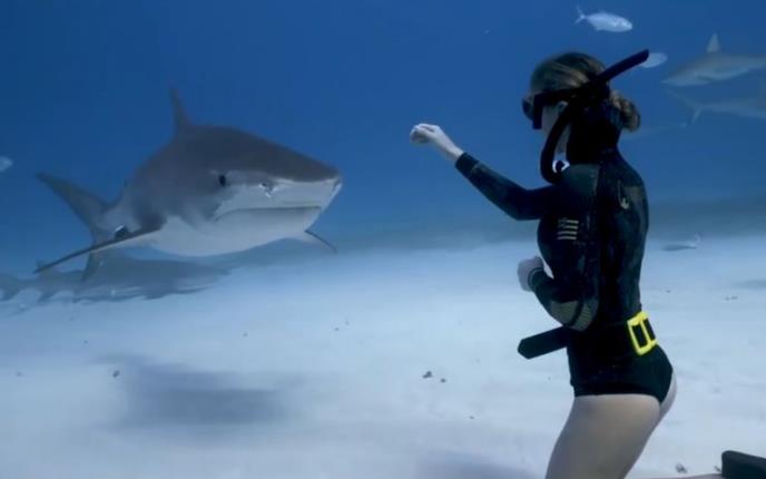 Takav je slučaj, recimo, bio sa ovom devojkom koja je zaronila u blizini Bahama i tamo imala bliski kontakt sa tigrastom ajkulom. Na sreću, ove ribe grabljivice su praktično pripitomljene, pa nema rizika da budete napadnute, ali svakako da vam srce jače zalupa kada se velika čeljust pojavi pred vama.