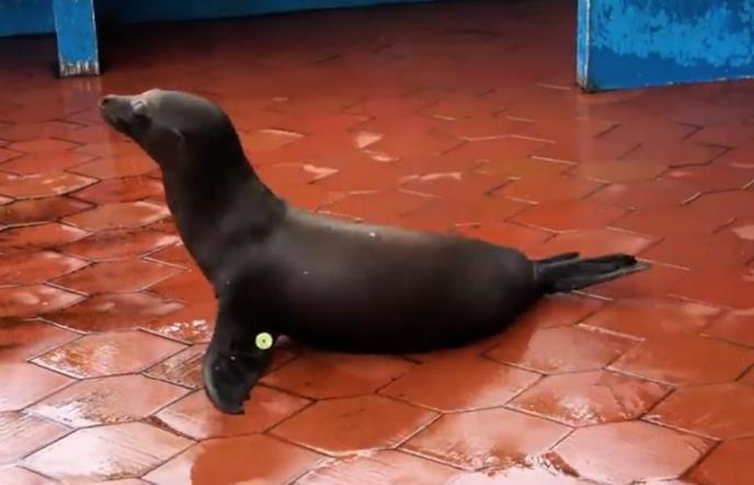 Ovaj simpatični mali frajer svakodnevno se pojavljuje na ribarnici na ostrvu Santa Cruz. On umiljato prilazi ribarima i moli ih svojim kricima za ostatke ribe koju čiste. Kada se najede, ovaj mali lenjivac odlazi na obalu i skače u okean za svojom mamom.
