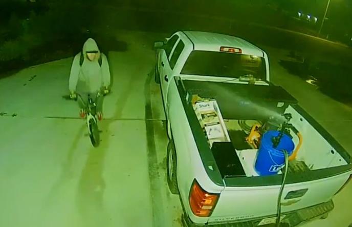 Na kamionet su stavili prskalicu koja vodu izbacuje pod velikim pritiskom, a aktivira se kretanjem. Lopov je prišao na biciklu sa maskom, a već u sledećem trenutku bio je okupan.