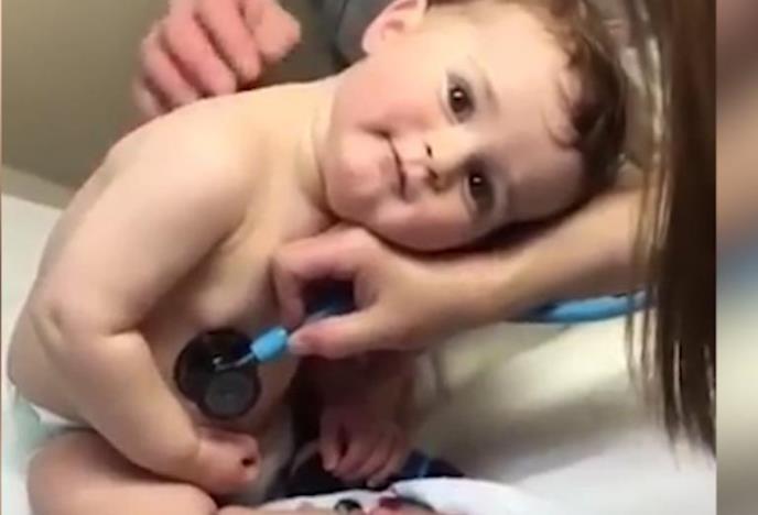 TETO, JA TE VOLIM! Nežna bebica u toku pregleda odlučila da odmori glavu na doktorkinom ramenu! (VIDEO)