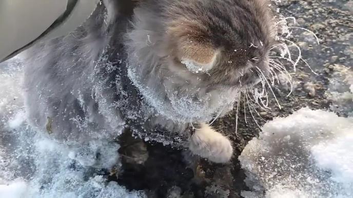 Mačka je pronađena smrznuta u Rusiji, ali nekako je uspela da dobije drugu šansu za život. Očevici ovog događaja tvrde da zaglavila nakon što je tražila utočište ispod toplih motora na vozilima. Kada su temperature pale ispod 35 speteni, mačka se zaledila i zalepila za tlo. Pogledajte video: