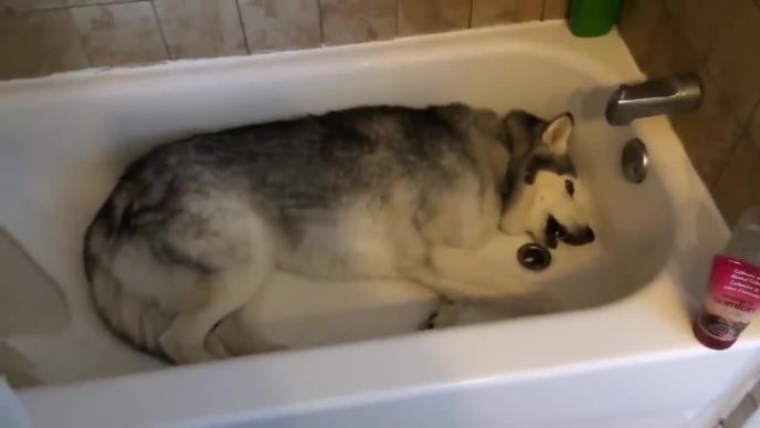 LUCKASTI, TVRDOGLAVI HASKI! Zavalio se u kadu i uporno zavija da mu vlasnica pusti vodu, ali ona je neumoljiva (VIDEO)
