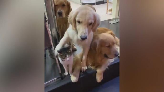 Zamislite život jedne prelepe mace i tri zlatna retrivera. Oni je paze, maze, brinu se o njoj. Nije bajka. Ovo je zaista stvarnost.