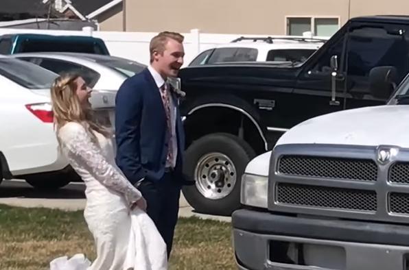 Ipak, kada su stigli kući, dočekalo ih je predivno iznenađenje. Njihovi prijatelji ipak su se pojavili i poželeli im sreću, i to poštujući pravilo društvenog distanciranja. Vozeći se u kolima, oni su čestitali mladencima mahanjem i uz pomoć poruka ispisanih na papirima.