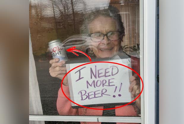 Olivija Veronesi (93) iz grada Seminole snimljena je na prozoru s natpisom "treba mi još piva", porukom koju je pokazivala komšijama i ćerki, a njena fotografija postala je viralna na društvenim mrežama.