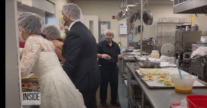 Umesto da odustanu od svega i pomere venčanje za neko bolje vreme, Melani i Tajler su ipak orgaizovali malo slavlje za najbližu rodbinu u dvorištu kuće, a onda su otišli do lokalne narodne kuhinje.