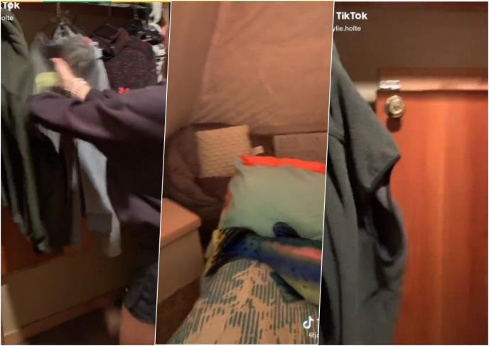 Korisnica Tik toka @jaylie.holte postavila je video na kojem se vidi kako otvara vrata ormara i otvara mala vrata na stražnjem delu ormara. Kada je otvorila vrata otvara nam se pogled na maleni prolaz koji vodi sve do sobice u kojoj se nalaze krevet, sto i veliki televizor.