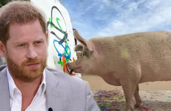 Apstraktna slika princa Harija je prodata za više od 2.000 funti (2.344 evra)., što ne bi bilo ništa čudno da je nije naslikala - svinja.