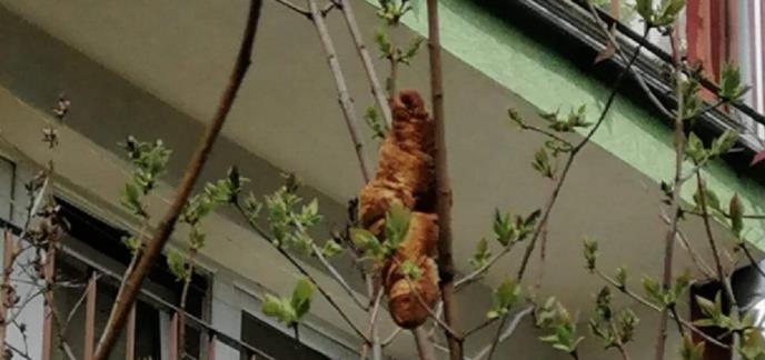U Krakovu, u Poljskoj sa jednog drveta vrebala je zlatno-smeđa zverka. Ljudi su bili prestravljeni i u šoku. Na kraju se ispostavilo da je reč o nečem sasvim drugačijem.