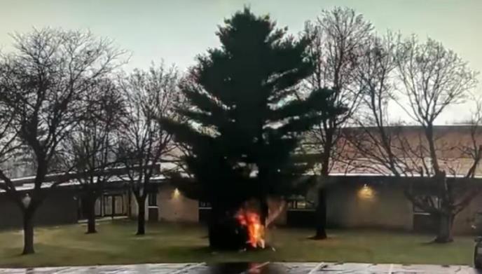 NWS je video objavio na svom profilu na Fejsbuku, a udar groma snimljen je ispred srednje škole Vautoma u Viskonsinu, 8. aprila.