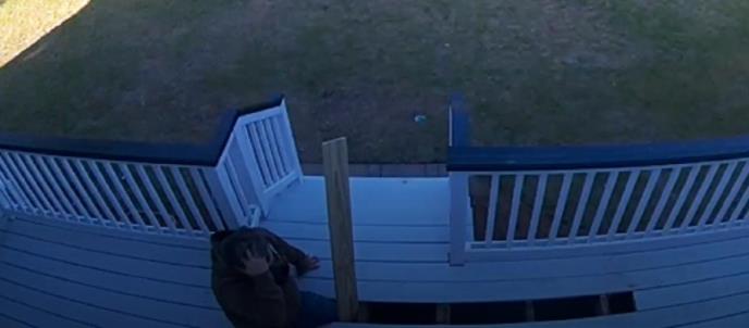 Međutim, desila mu se nezgoda koja je nalik legendarnim scenama iz crtanih filmova. Naime, nespretni čovek je stao na dasku, a ona ga je odalamila po glavi. Zbog udarca je završio u rupi na tremu i ostao je da sedi u njoj držeći se za glavu.