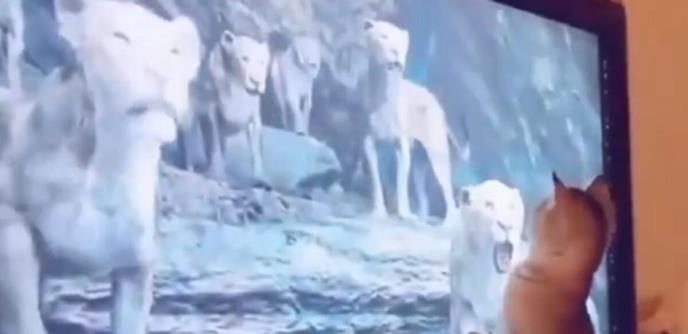 Naime, malo mače je prišlo televizoru kada su se na ekranu pojavili lavovi. Mače oduševljeno što vidi daleke rođake je nestremice piljilo u mlade lavove i izgledalo je poprilično iznenađeno i odzuševljeno. Kada se pojavio stariji lav na ekranu i krenuo sa rikom, mače se toliko uplašilo da je palo sa komode.