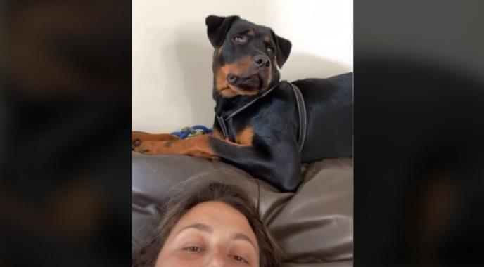 Vlasnica jednog psa, rotvajlera počela je pred njim da mazi mačku, a on joj je svojom reakcijom jasno dao do znanja što misli o tome.