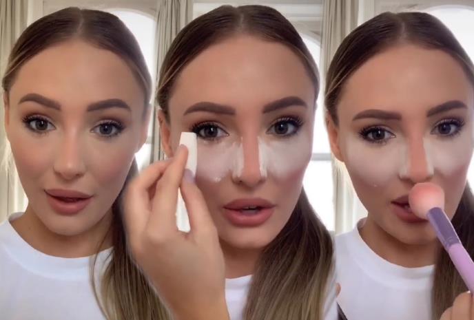 Trebalo bi da uzmete mali, trouglasti sunđer za šminkanje i na njega nanesete prašak za pecivo, a potom njime pređete liniju duž nosa (uz nozdrve, ne po sredini nosa) i ispod očiju.
