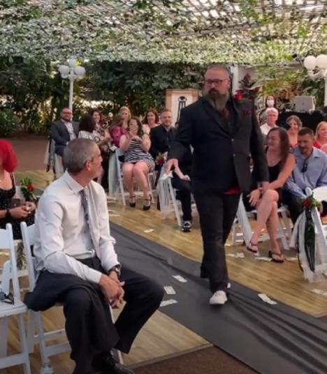 Dženi, organizatorka venčanja iz Las Vegasa, na svom TikToku je podelila video u kom se vidi kako bradati muškarac ide ispred mlade i baca novčanice uz pesmu "Make It Rain" Trevisa Portera.