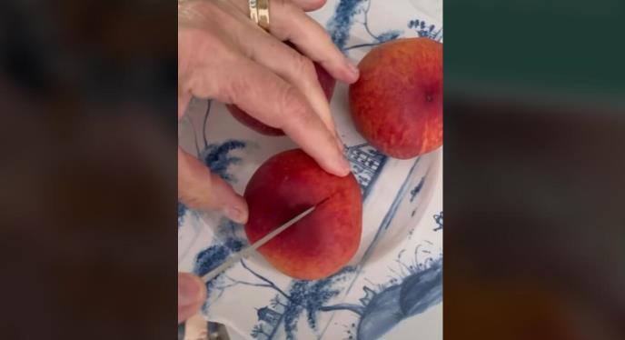Osim toga, baka u videu otkriva i još jedan trik kada je u pitanju ukusno voće, a to je kako skinuti kožu sa breskve u nekoliko sekundi.