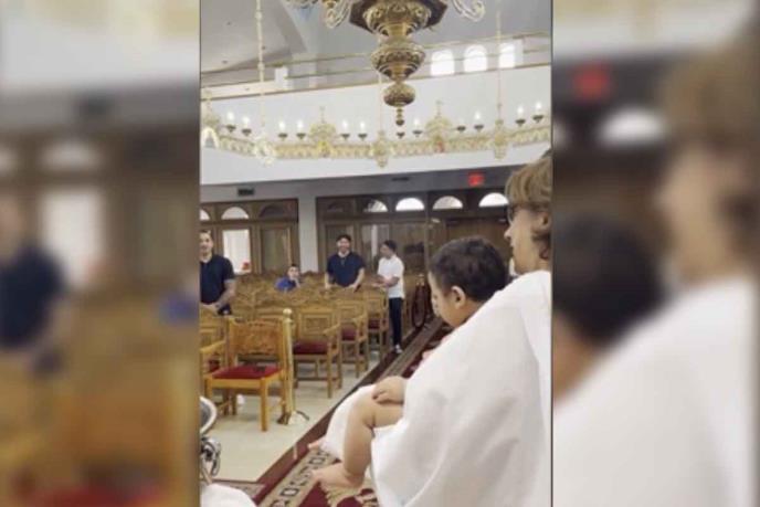 Dimitri Limberatos (35) i njegova supruga Melina poveli su sedmomesečnog sina Džonatana na krštenje i sve je teklo po propisima dok nije došlo do urnebesnog zaokreta, kada se mali Džonatan popiškio, i to umalo i po svešteniku.