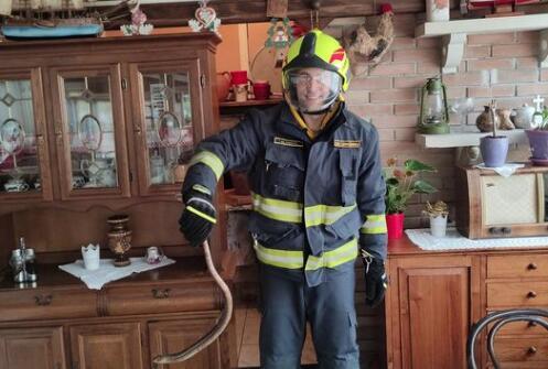Fotgrafija vatrogasca je završina na društvenoj mreži Fejsbuk, vatrogasac je držao zmiju i pozirao sa osmehom na licu.