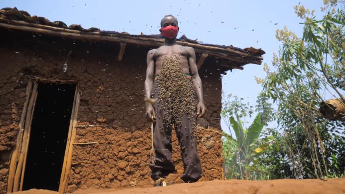 Ndajisaba, pčelar iz centralnoafričke republike Ruande, od malih nogu brine o pčelama, ali je stekao novu slavu nakon što se na društvenim mrežama pojavila serija fotografija na kojima se vidi kako nosi "kaput" pčela.