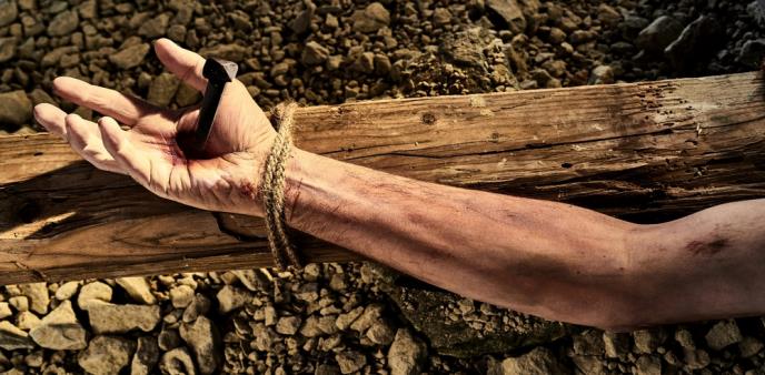 U Getsemanskom vrtu Isus se molio čekajući da po njega dođu rimski vojnici. Na lažnom suđenju pred rimskim prefektom Poncijem Pilatom i vazalskim kraljem Herodom osuđen je na smrt raspećem. Krst na kome će biti razapet nosio je na leđima ulicama Jerusalima. Raspeće se dogodilo na brdu Golgota, a oko glave Isusu je stavljen venac od trnja. Nakon što je u petak izdahnuo, sahranjen je u subotu u pećini koju su zatvorili stenom, prekriven belim pokrovom. U nedelju je Isus ustao iz mrtvih.