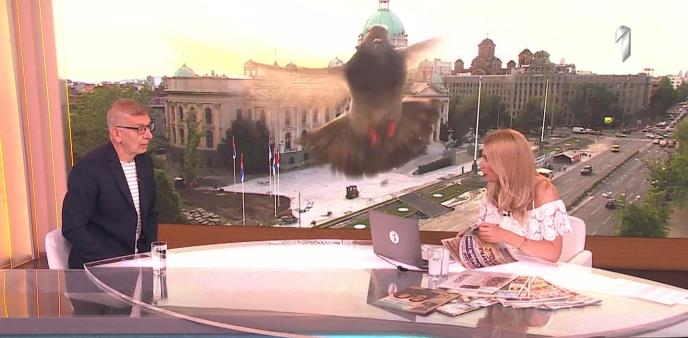 U jutarnjem programu na TV Prva jutros je u kadar uleteo nezvani gost. Naime, tokom gostovanja metorologa Nedeljka Todorovića u kadar na video-bimu u pozadini uleteo je ni manje ni više nego golub.