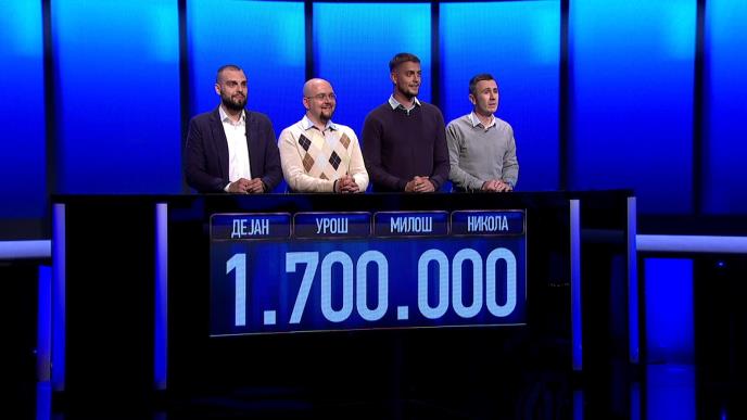 Takmičarski tim, koji su činili Nikola, Miloš, Uroš i Dejan, uspeo je da umakne tragaču Milanu Bukviću i bude bolji od njega u finalnoj igri, osvojivši neverovatnu sumu - od čak 1.700.000 dinara!