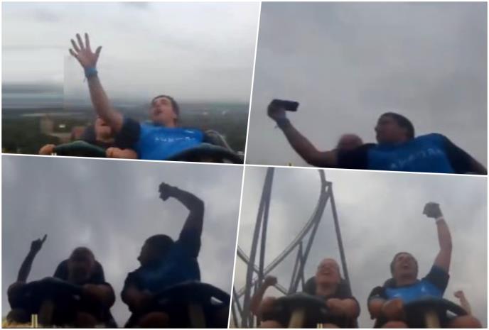Nekome je očigledno tokom vožnje rolerkosterom ispao telefon iz džepa, a momak ka kome je telefon leteo, bio je dovoljno priseban da ispruži desnu ruku i pri ogromnoj brzini uhvati telefon, što je izgledalo zaista neverovatno.