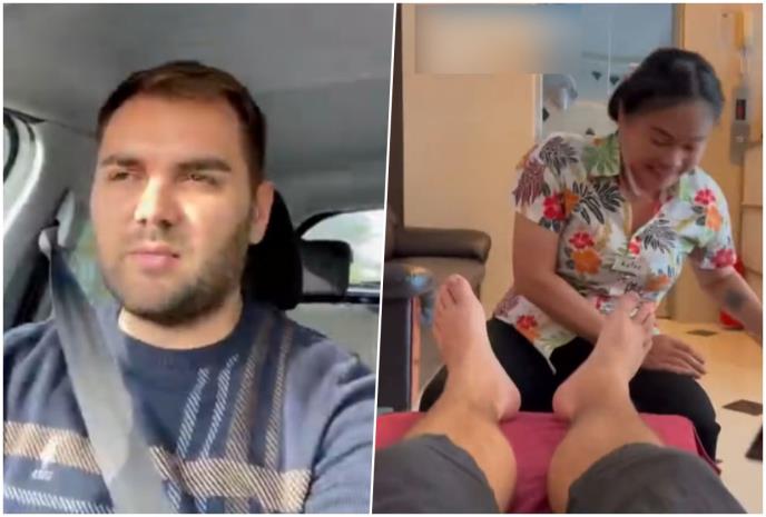„Došli smo na tajlandsku masažu stopala, sat vremena, 5 evra“, napisao je on na storiju.