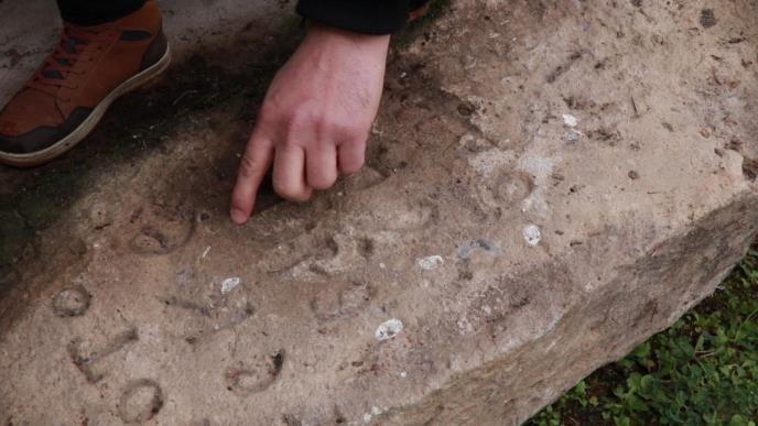 - Ovde imamo jedan kamen koji je bio nekada stepenik na ulasku u staru kuću koja je bila na mestu ove. Ta kuća je rasturena 1964 godine i prilikom rasturanja ljudi su primetili da sa donje strane ovog kamena tj. stepenika postoji jedan tekst. Ja sam bio tu i zamolio sam svog oca i dedu da se taj kamen sačuva, jer sam smatrao da taj tekst nosi važnu informaciju - kaže Milovan Srić iz sela Liplje.