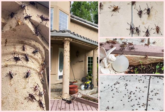 "Probudili smo se jutros i zidovi su u celosti bili prekriveni cvrčcima. Moj siroti suprug se ceo dan trudi da ih se reši, pokušao je čak i s duvačem za lišće, ali sve su prekrili. Od dvorišta do kuće.