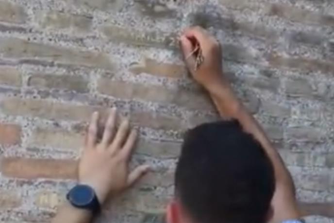 Njega je, dok je urezivao "Ivan i Hejli 23" u zid Koloseuma, snimio drugi turista Rajan Luk.