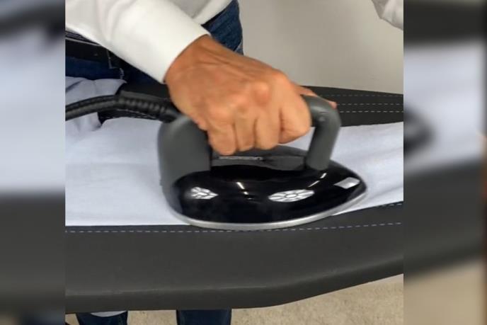 "Ovo je moja tajna. Započnite tako da okrenete košulju naopako i pustite da pegla jednom klizne po tkanini" objasnio je pa pokazao kako je dobro ispeglano.