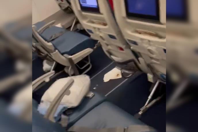 Sada se pojavio snimak iz unutrašnjosti aviona koji prikazuje operaciju čišćenja. U kratkom snimku može se videti kako je prolaz na nekim mestima prekriven papirnim ubrusima, na kojima se nazire smeđi talog.