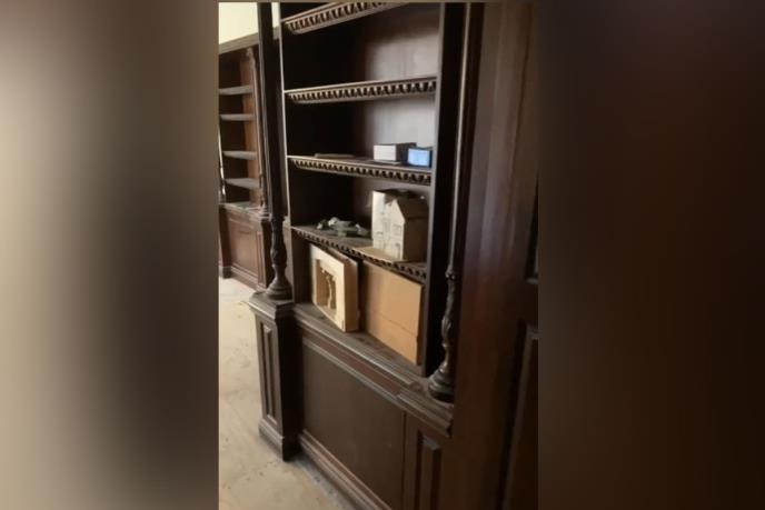 Na snimku se kako se pokretom levo-desno drvenom ručkom otvaraju tajna vrata koje vode u misteriozni ostatak kuće.