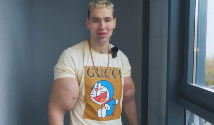 Ovaj momak sebe naziva “profesionalnim bodibilderom”, a ranije je imao zdravstvene probleme, jer je uvećao bicepse mešavinom na bazi ulja “sintol”.
