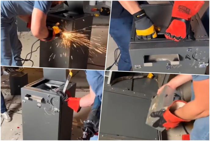 Međutim, bankomat nije lako obiti, pa su morali da koriste brusilicu, bušilicu i druge alate.