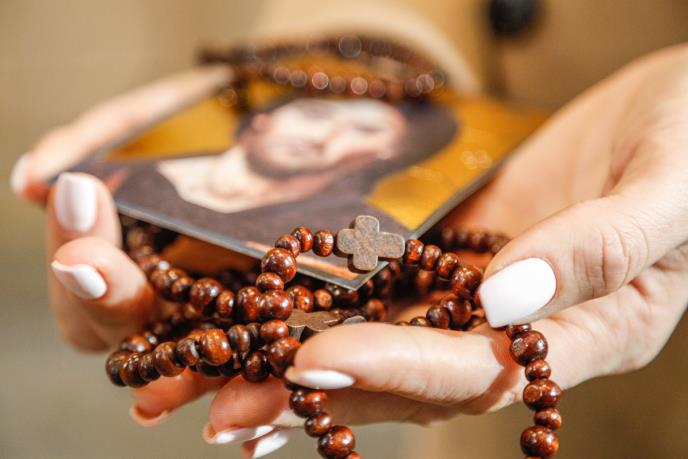 Osenimo se znakom časnog krsta desnom rukom i tiho počnemo odbrojavajući svaku pojedinu molitvu jednim čvorićem.