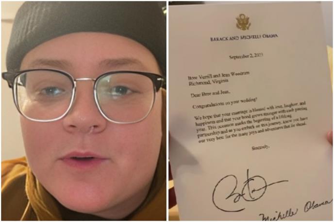 "Između ostalih, na venčanje sam pozvala Baraka i Mišel Obamu. Danas sam proverila poštu i videla njihovu pošiljku s Barakovim potpisom. Zvala sam mamu, zvala sam najbolju prijateljicu... Barak Obama poslao mi je poruku za venčanje. On zna da sam se venčala", ispričala je Bri i kasnije sa suprugom pročitala poruku od bivšeg američkog predsednika i njegove supruge.