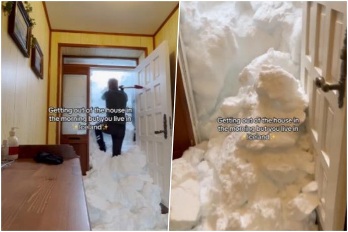 "Izašao bi iz kuće ujutru, ali živiš na Islandu", piše u opisu videa objavljenog na TikToku. Snimio je sneg koji se samo sjurio u kuću prilikom otvaranja ulaznih vrata. Uzeo je lopatu, napravio prolaz, te se popeo na sneg i tek onda izašao iz kuće.