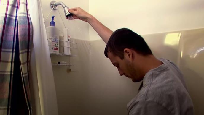 Zanimljivo da pored tuš-kabine drži kantu u kojoj čuva vodu isceđenu iz odeće. Zašto to radi? Da bi je krajem nedelje iskoristio za ispiranje WC šolje.