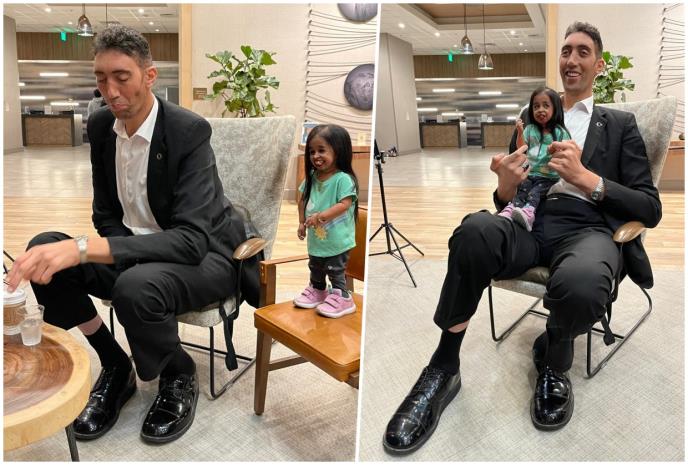 Najniža žena na svetu Joti Agme i najviši čovek na planeti Sultan Kosen sreli su se juče u Kaliforniji. Nesvakidašnje fizičke karakteristike odvele su ih do Ginosve knjige rekorda. Svojim životnim pričama inspirišu mnoge jer se hrabro nose sa svim životnim izazovima.