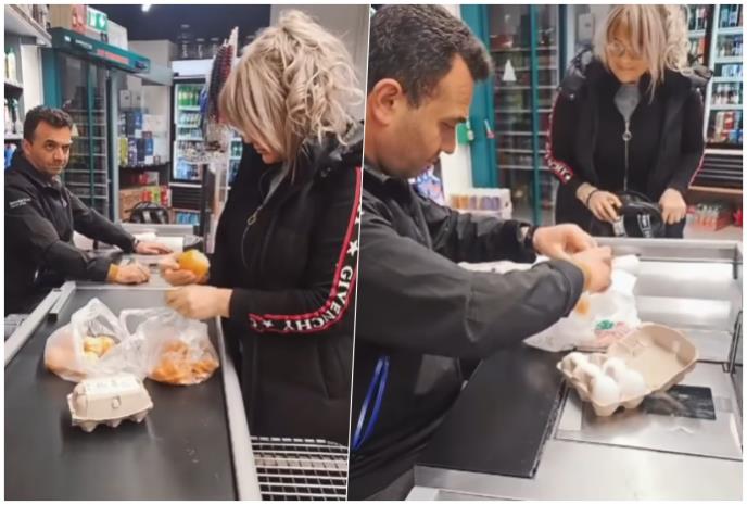 Kasir je ženi doskočio tako što je počeo da vadi jaja iz kartona koji je pazarila, te ih je redom razbijao i njihov sadržaj sipao u kesu.