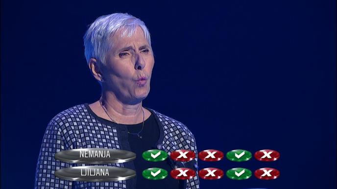 Ni finalna runda nije bila ništa manje napeta. Ljiljana i Nemanja bili su izjednačeni iz pitanja u pitanje i tako došli do čuvenih „penala“. Na samom kraju presudila je koncentracija, kada je zbog pada iste gospođa Ljiljana napravila lapsus, te na pitanje koji pigment nedostaje ljudima sa albinizmom umesto melanin, odgovorila sa melatonin. Timski duh ove takmičarske ekipe još jednom je došao do izražaja, kada su Ljiljana i Nemanja aplaudirali i čestitali jedno drugom na izvanrednoj igri.
