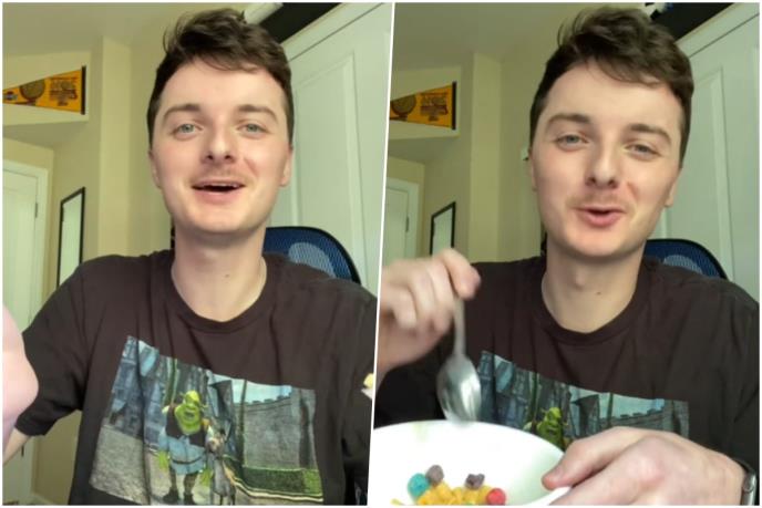 "Nemam baš šta da vam ponudim, ja sam samo lik s lošim brkovima", rekao je pa počeo da jede žitarice, čekajući da video dostigne 60 sekundi.