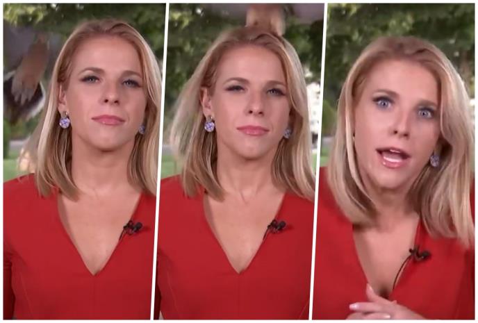 Na glavu novinarke koja je izveštavala ispred Bele kuće sletela je ptica neposredno pre nego što je trebalo da se uključi uživo u program.