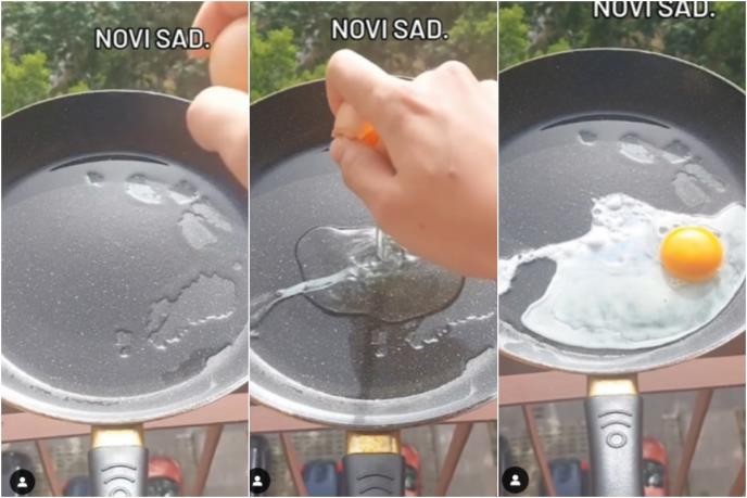 Naime, na Instagram stranici "Novi Sad Nekad i Sad", pojavio se video snimak na kojem osoba peče jaja na terasi, u tiganju koji je zagrejan na suncu.