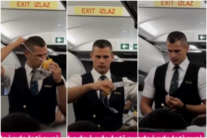 Video u kome se vidi kako momak objašnjava putnicima u avionu proceduru u slučaju propadanja ili pada aviona munjevito se deli na društvenim mrežama, ali ne zbog njegovih instrukcija, na koje niko nije ni obratio pažnju.